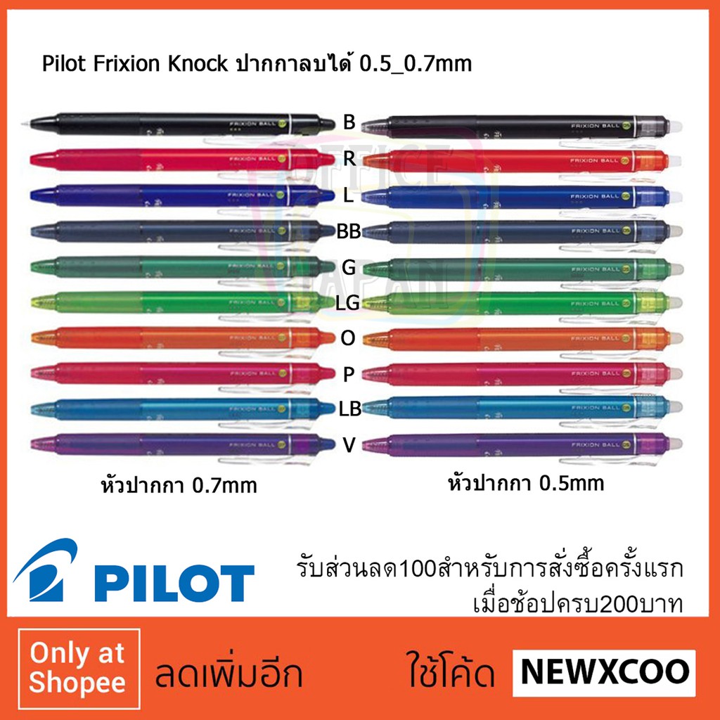 ราคาโปรโมชั่น!! Pilot Frixion Knock ปากกาลบได้ ขนาด 0.5_0.7mm ของแท้ นำเข้าจากประเทศญี่ปุ่น คุ้มไปเลยสุดๆ