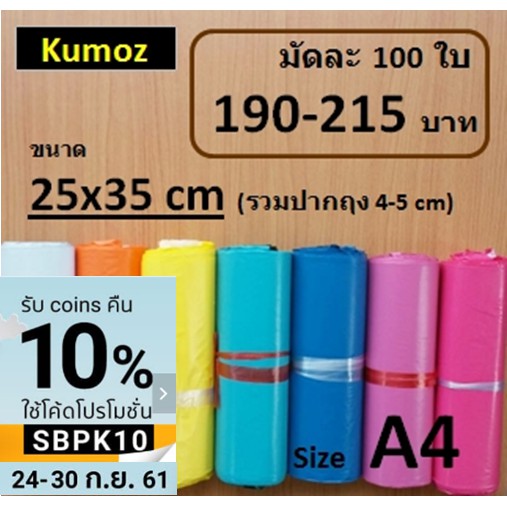 ซองไปรษณีย์พลาสติกกันน้ำ ขนาด 25x35 (รวมปากถุง 4-5 cm) [A4] มัดละ 100 ใบ