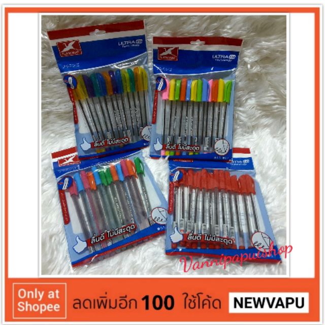 ปากกาลูกลื่น Flamingo (Ultra Flo technology) ราคาต่อแพ๊ค 12 ด้าม (ตกด้ามละไม่ถึง 3 บาท) ราคาถูกและพิเศษ อาจจะมีเวลาที่จำกัด ก่อนที่ท่านจะซื้อ ปากกาลูกลื่น Flamingo (Ultra Flo technology) ราคาต่อแพ๊ค 12 ด้าม (ตกด้ามละไม่ถึง 3 บาท) อย่าลืมเช็ค สถานะของสินค้าก่อนว่ายังมีสินค้าอยู่ในสต๊อคหรือไม่ ด้วยการบริการที่ดีเยี่ยมของเราและความหลากหลายบริการการจัดส่งให้คุณเลือกได้ตามสะดวก และรีบรับข้อเสนอสุดพิเศษ จากทางเราก่อนที่สินค้าจะหมด